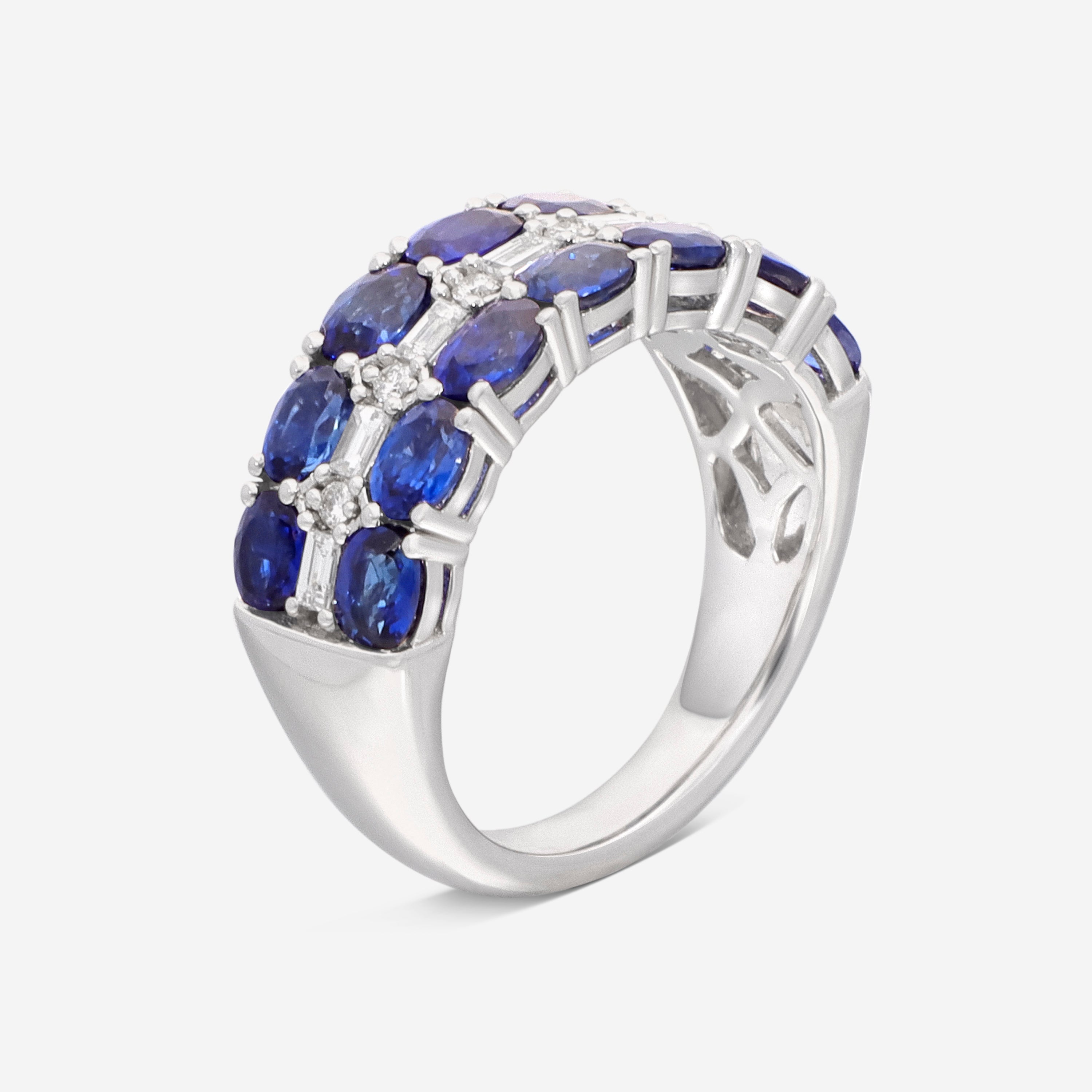 Ina Mar 14K White Gold Three Row 0.31ct.tw Diamonds and 3.17ct.tw Blue Sapphire Statement Ring