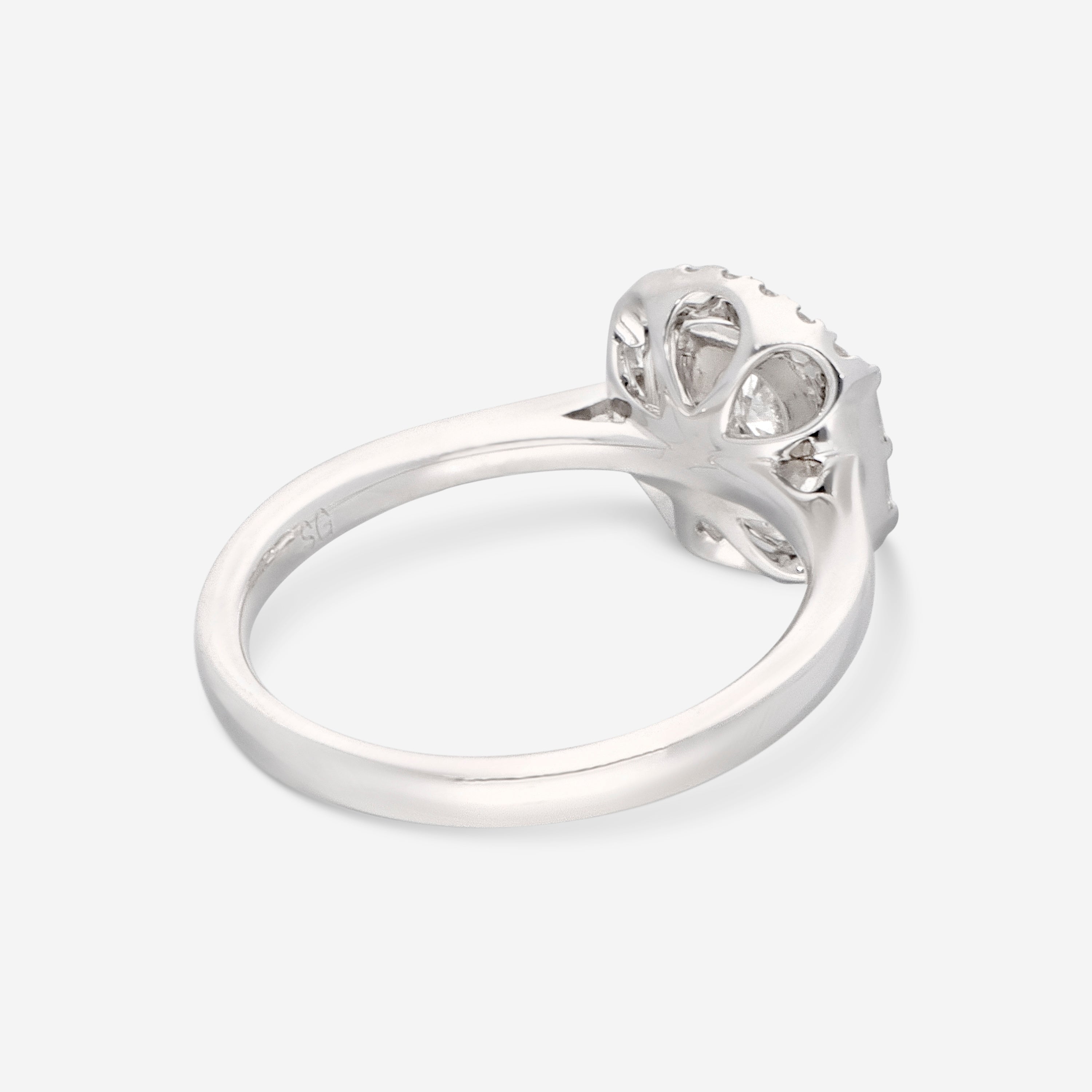 Crafted in luxurious 18K white gold, this engagement ring by Ina Mar features a timeless and classic design adorned with diamonds. The total diamond weight is 0.54 carats, providing a brilliant and captivating sparkle. The diamonds are likely arranged in a clustered formation, creating a design that is both intricate and eye-catching.